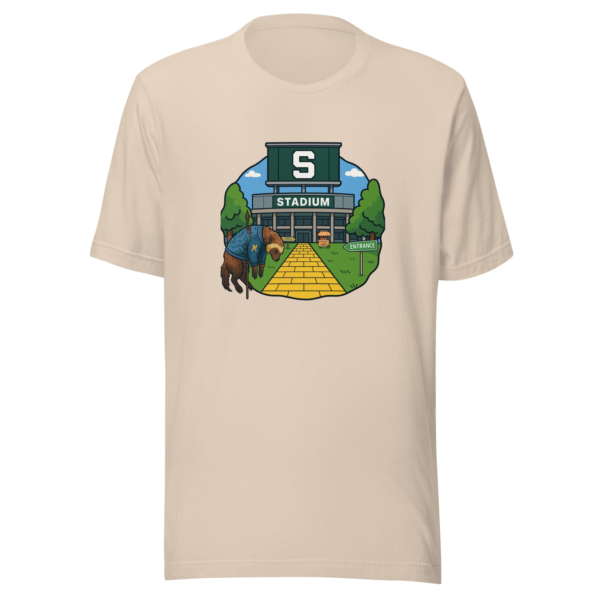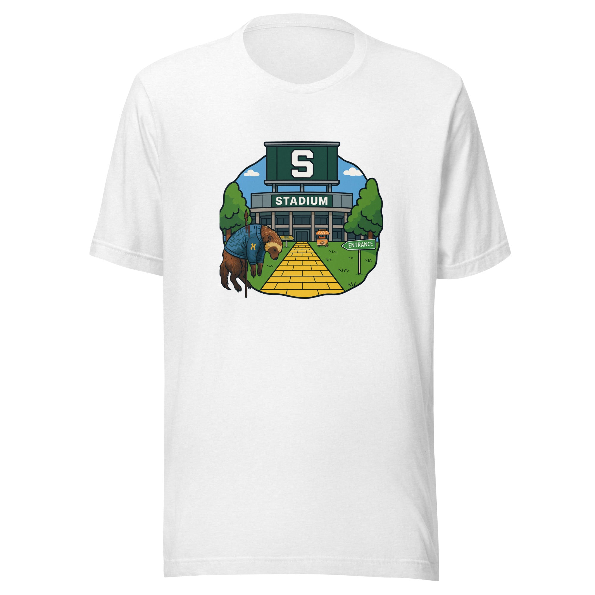 East Lansing is where optimism checks in and realism forgets to leave. Michigan State fans oscillate between cutting-edge science and ancient superstition, mostly depending on who’s injured. The Spartans make consistency a contact sport, and this 100% cotton tee is here for all of it. Soft, unisex, and mildly haunted by 2015, it captures Michigan State tradition and Spartans pride with equal parts caffeine and denial. Stroll through East Lansing and the same guy will tell you Izzo’s still got “one more run” left—he’s probably right, but the shirt isn’t betting on it.