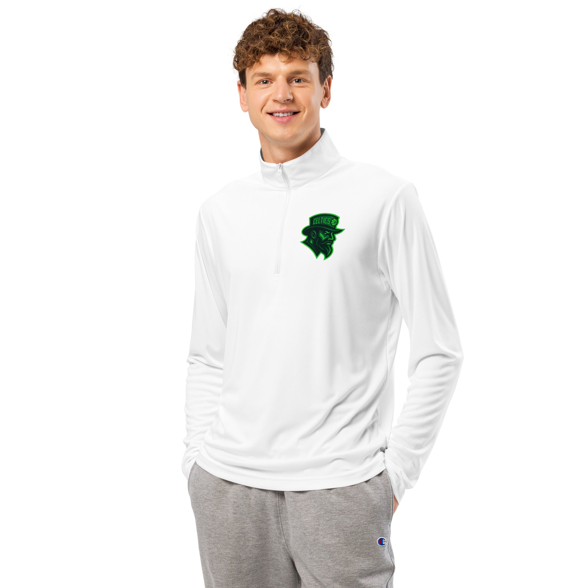 Boston basketball quarter zip, Celtics quarter zip, Boston fan pullover, Celtics basketball pullover, Boston sports quarter zip, Celtics fan apparel, Boston basketball clothing, Celtics supporter gear, Boston basketball performance pullover, Celtics fan quarter zip